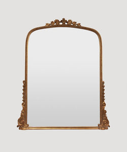 The Mantle mirror is inspired by the ornate, architectural forms of late Italian Renaissance design. Crafted from iron, and painted in antique gold. Made from MDF, resin and mirror. Comes in two sizes - LARGE or medium. Care Instructions: Wipe with soft dry cloth and domestic glass cleaner. Indoor use only. Avoid using in high humidity areas.