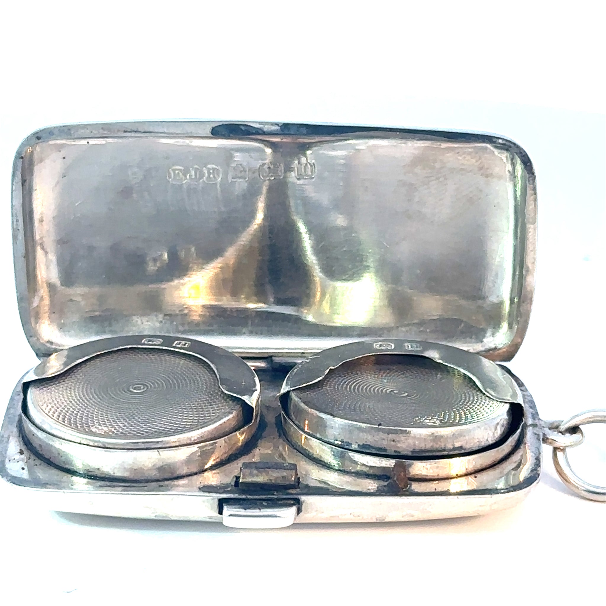 Antique Stirling Silver Double Sovereign Case. Designed to hold both full sovereign and half sovereign coin. Interior features sprung platforms to securely hold the coins in place. Has bail so could be put on a chain.