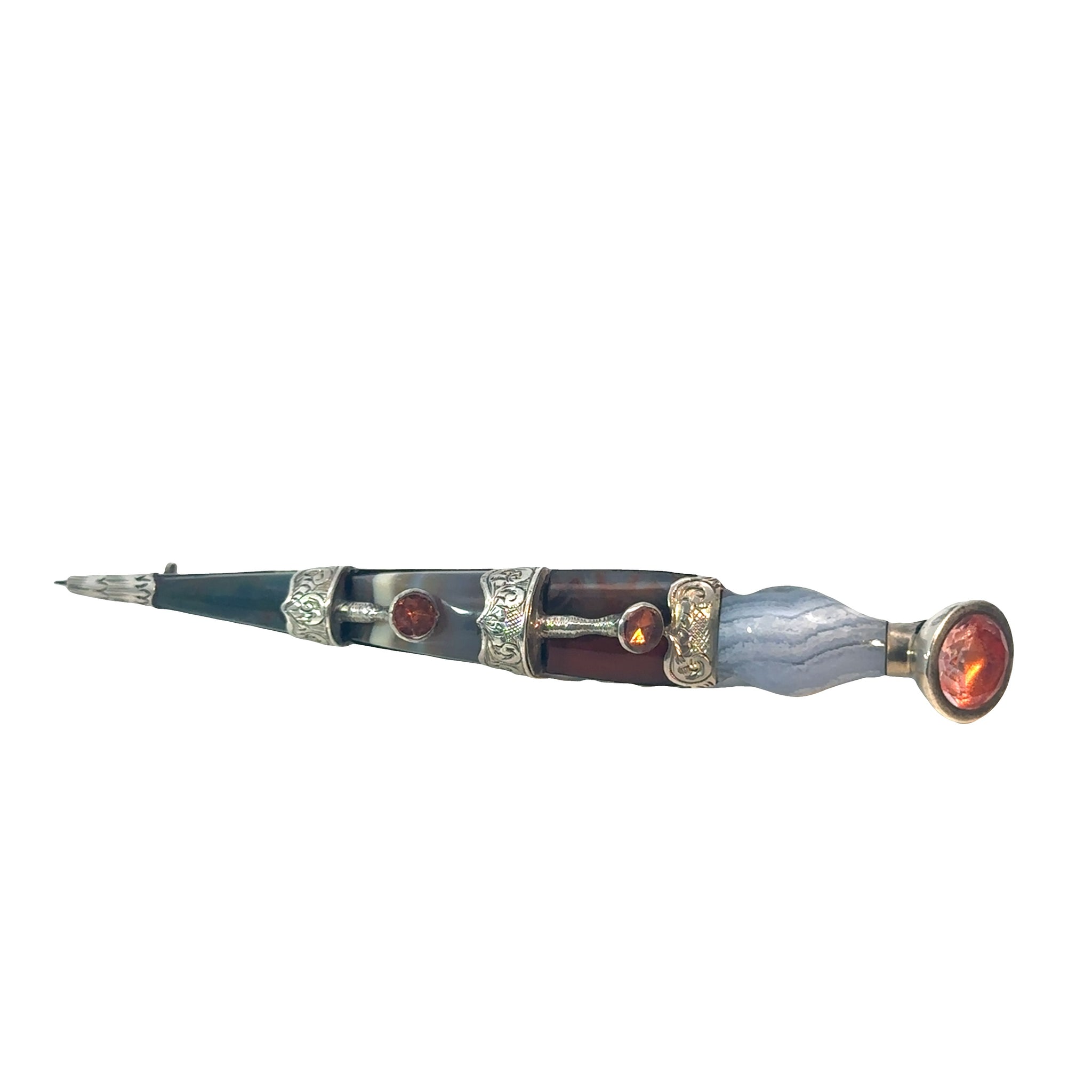 Large Agate Kilt Pin Brooch in Sterling Silver