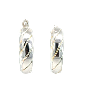 Italian Twist Hoop Earrings in Sterling Silver. Comfort curved with lift up fittings. Polished finish. Made in Italy.
