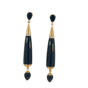 Onyx Diamond Drop Earrings in 9ct Yellow Gold