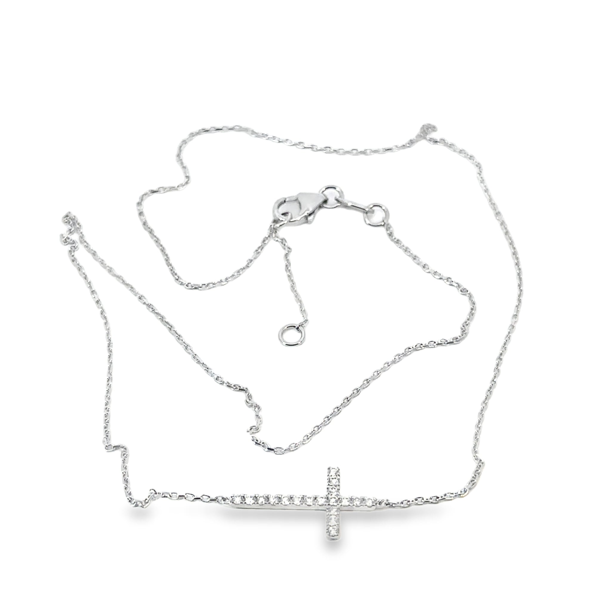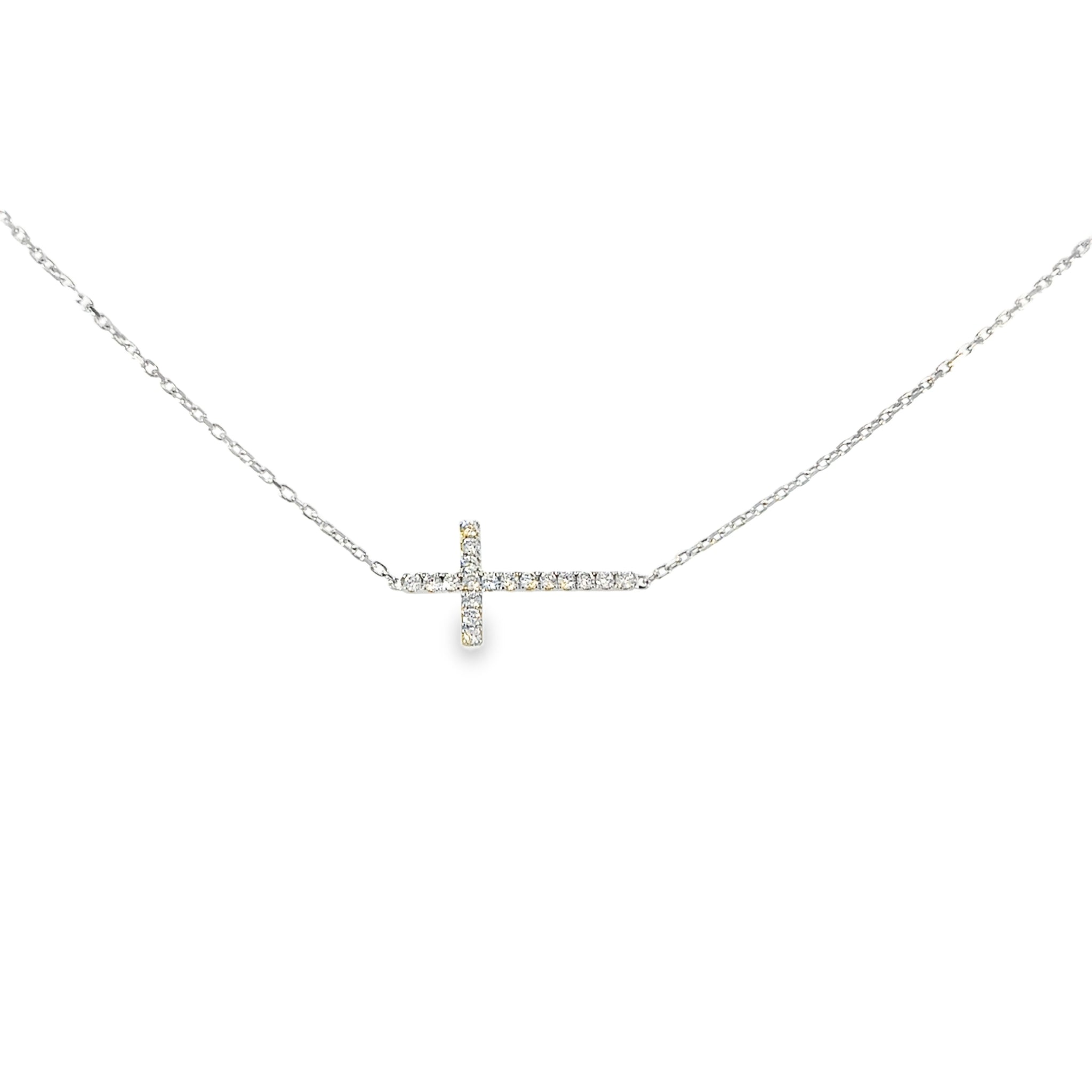 Diamond Side-Way Cross Necklace in 18ct White Gold