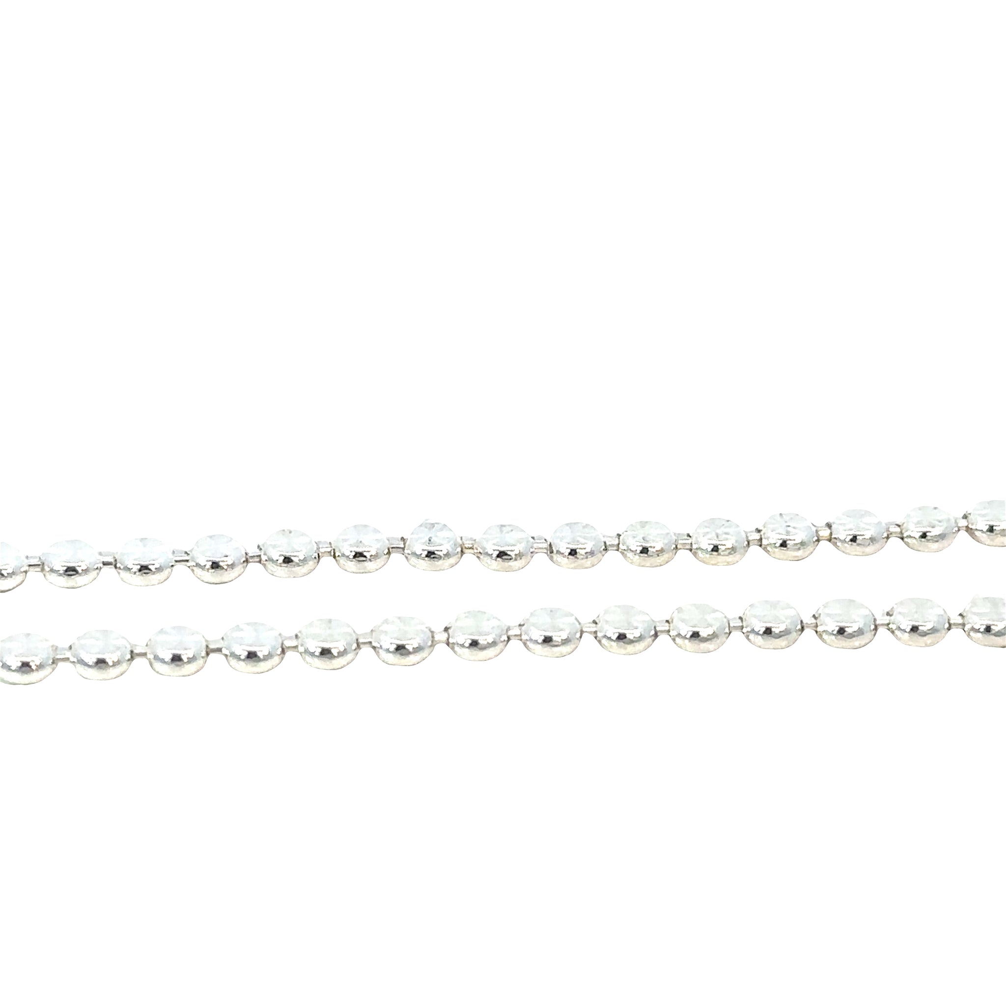 Round Faceted Flat Ball Chain Necklace in sterling silver. Oval parrot clasp with cap end.