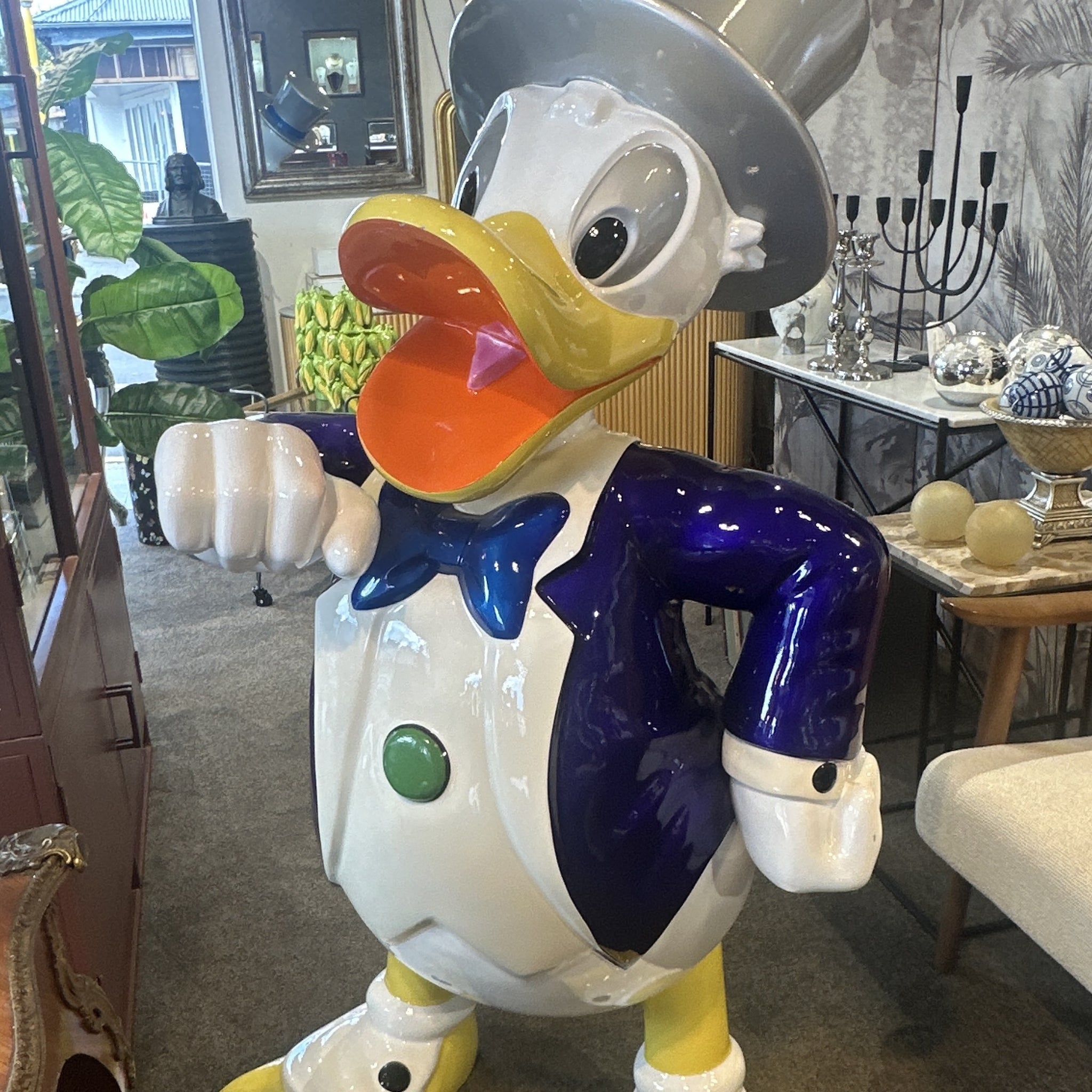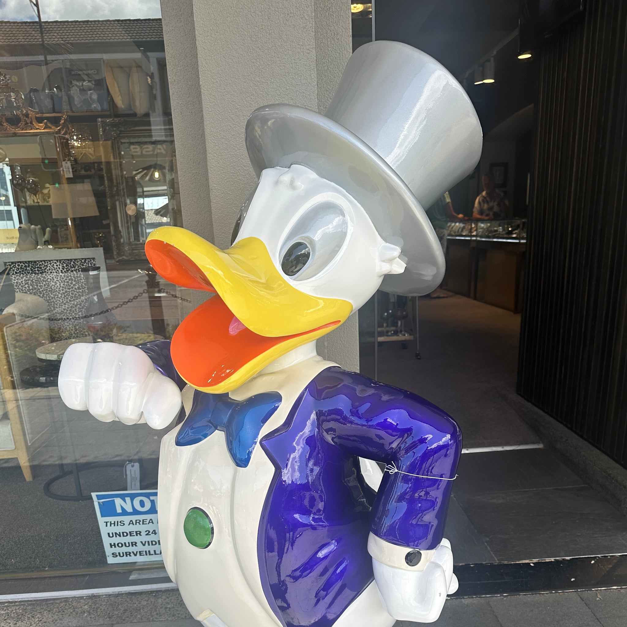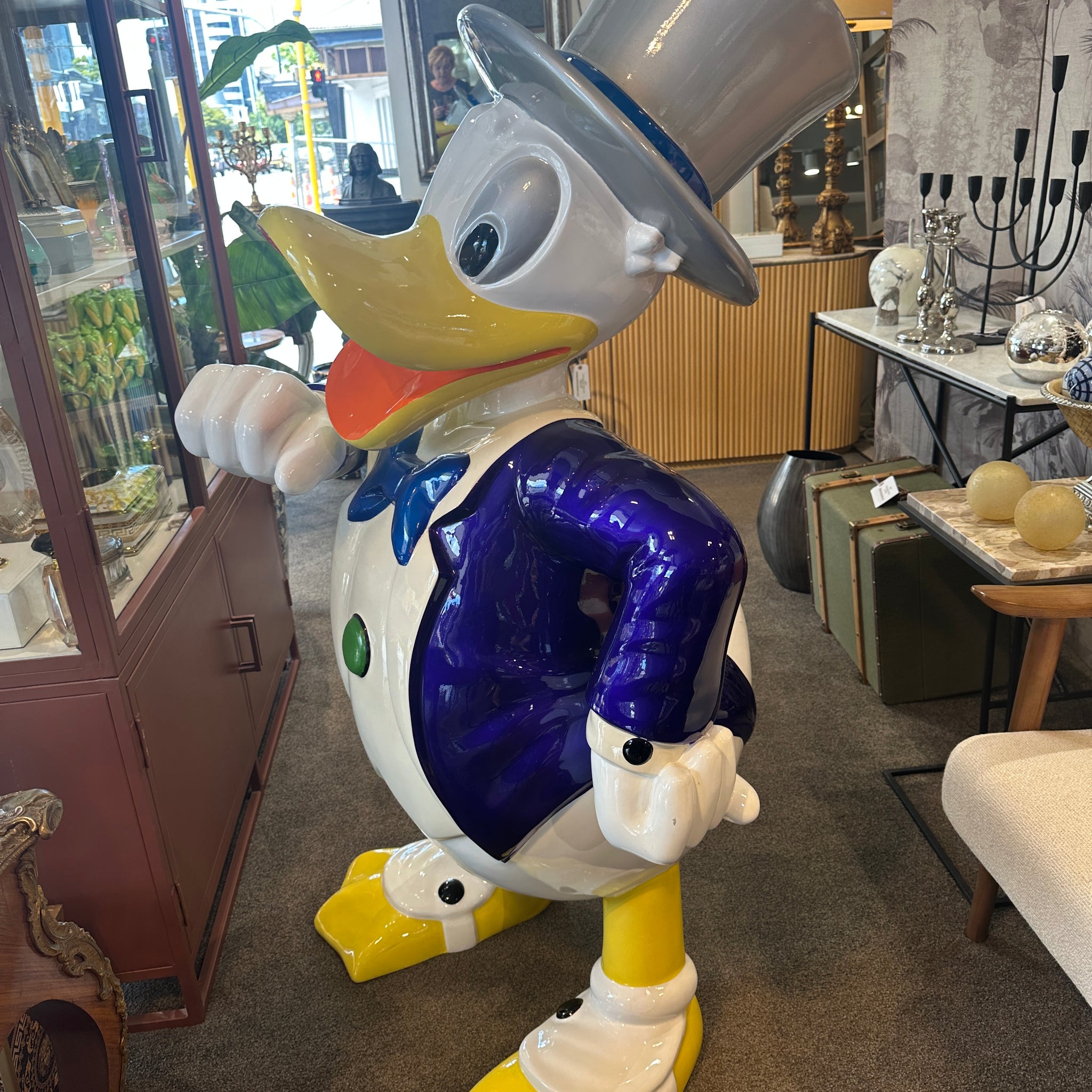 A giant Donald Duck made from fibre glass in bright coloured automotive paint and lacquer.