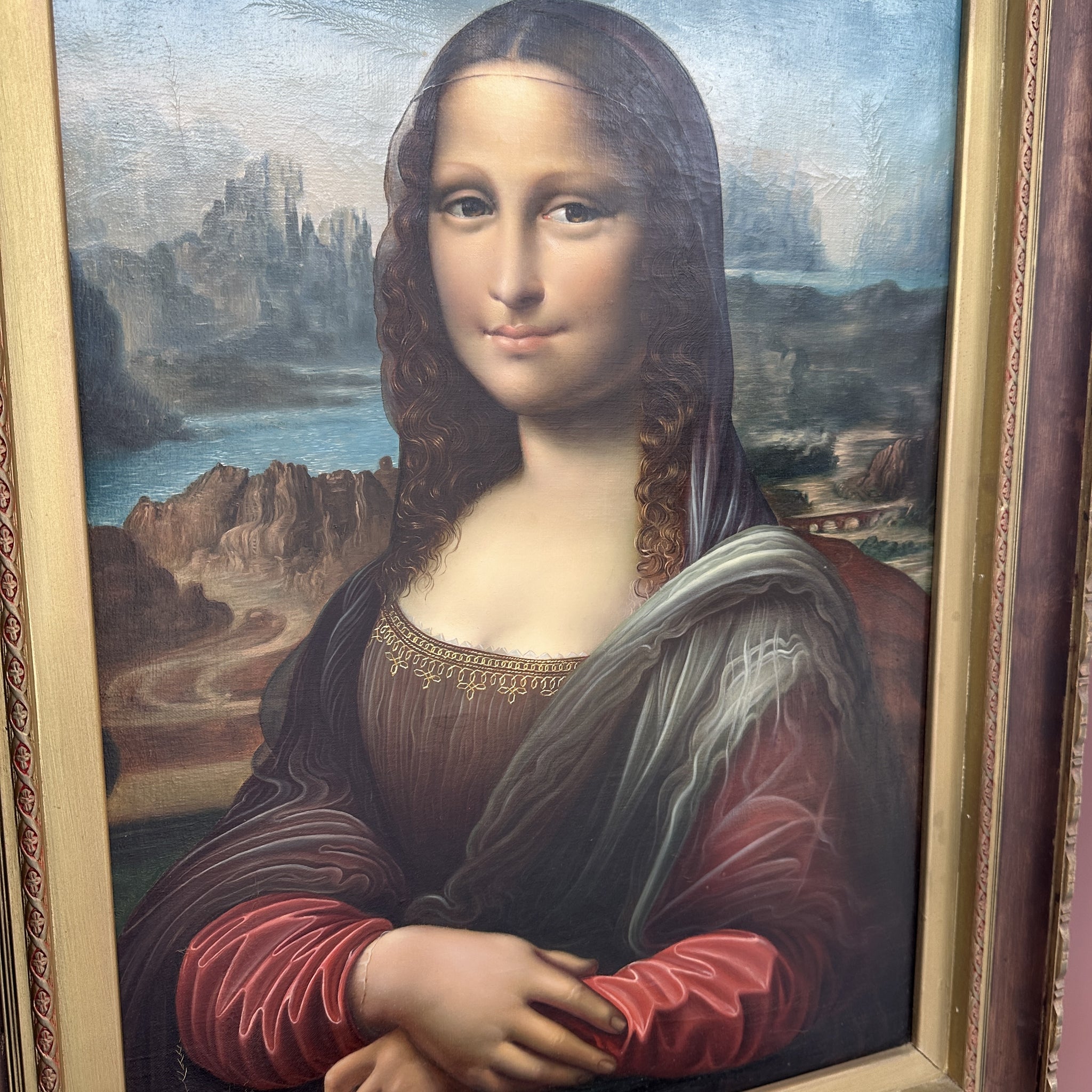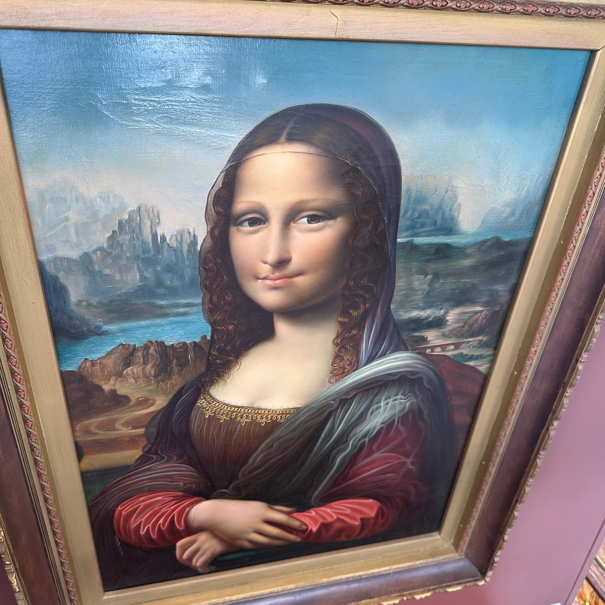 Luis Carrillo Young Mona Lisa Copy. C1973.  Acrylic on canvas signed and dated. Luis Carrillo 1973.