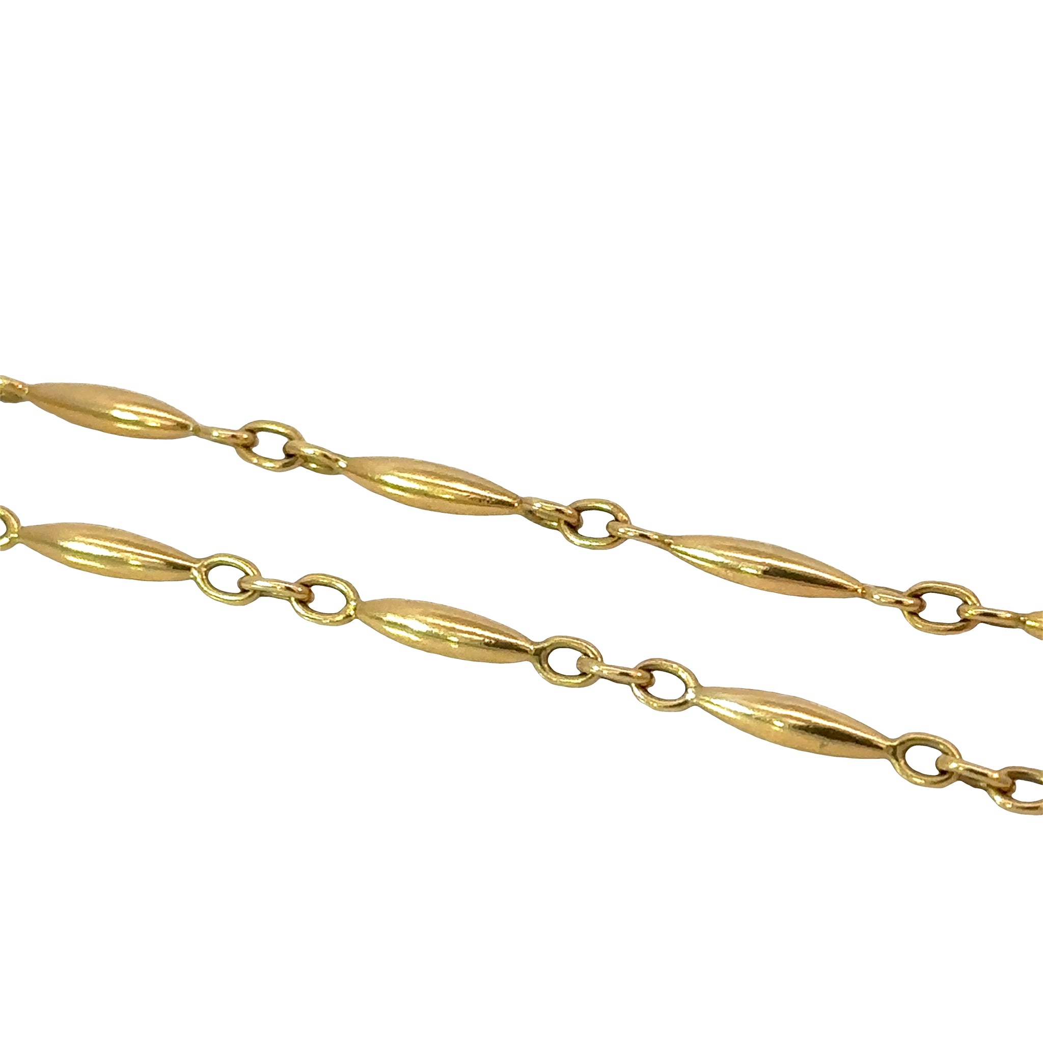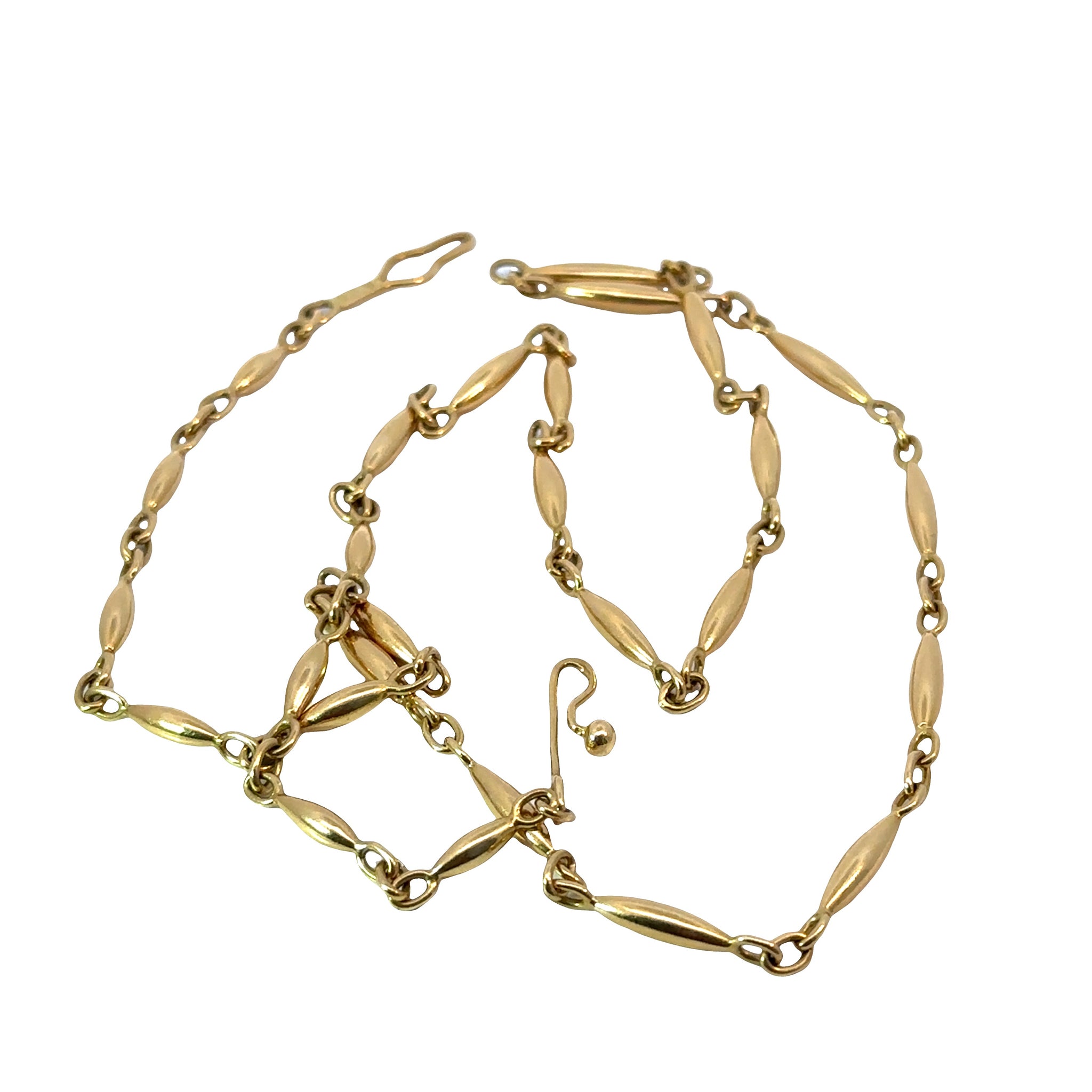 Marquise Shape Fancy Link Necklace in 18ct Yellow Gold. Long hook clasp .