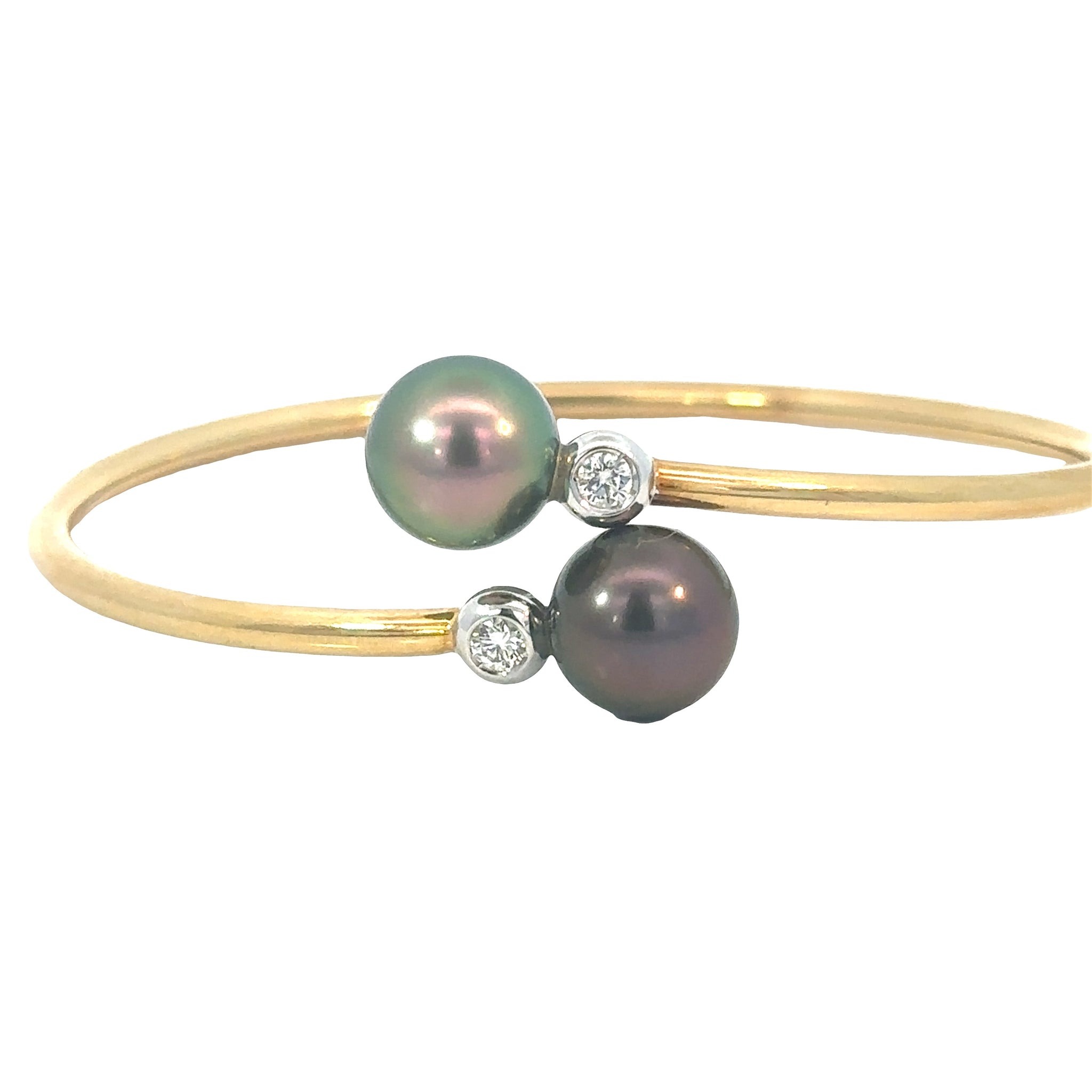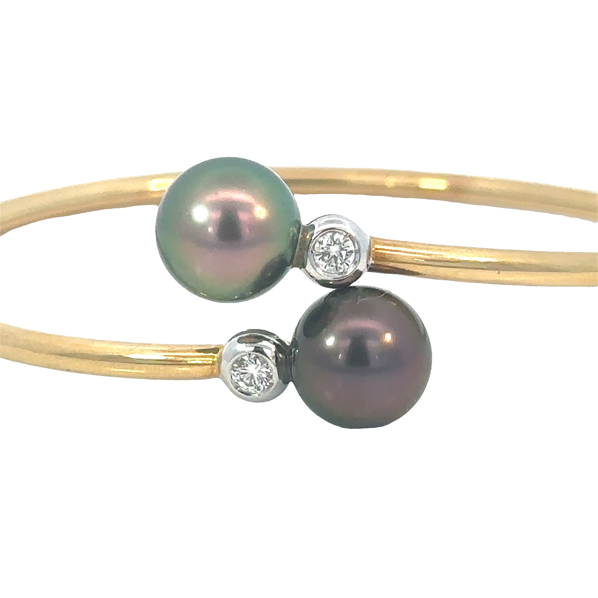 Beautiful Tahitian Pearl and Diamond Twist Bangle set on 18ct Yellow Gold.