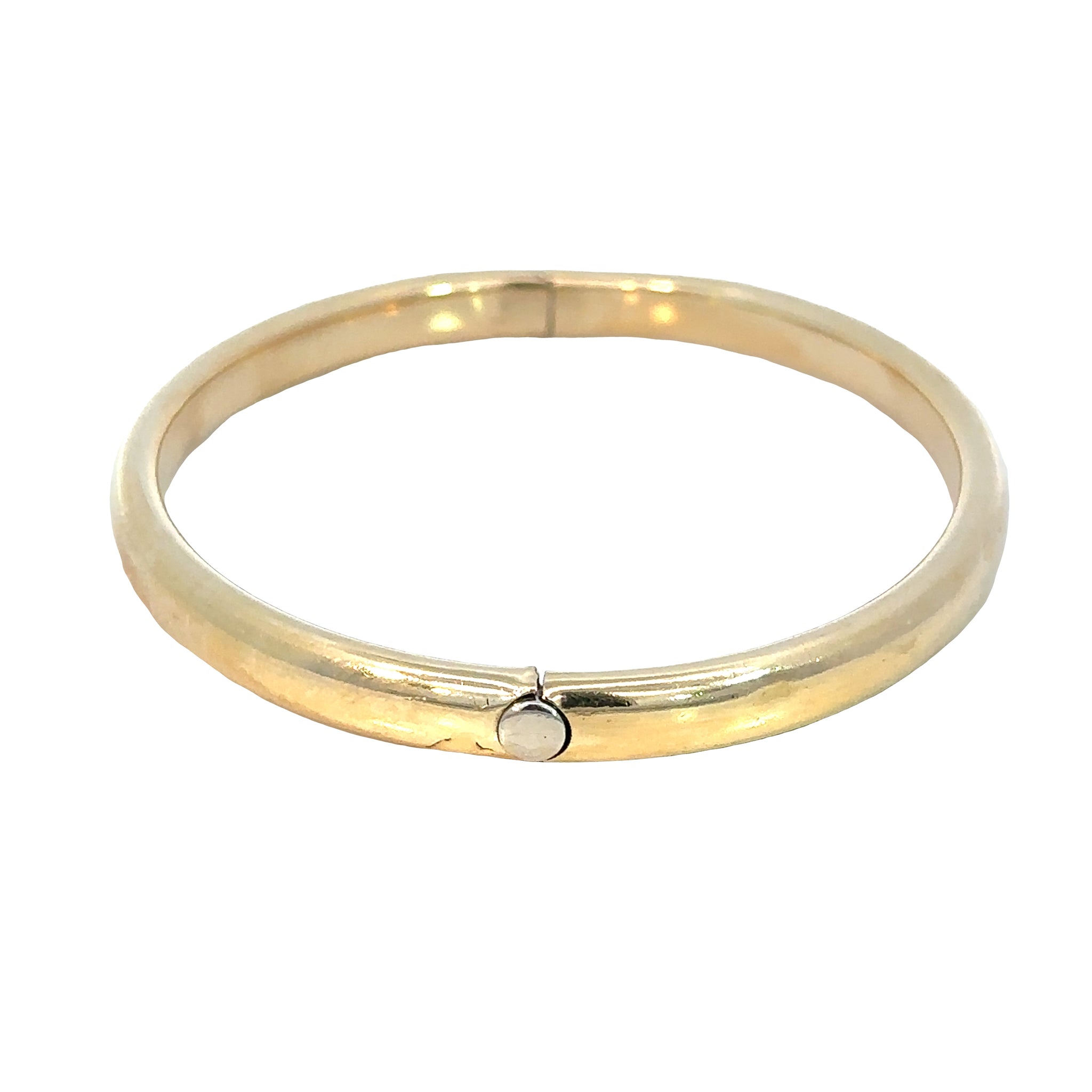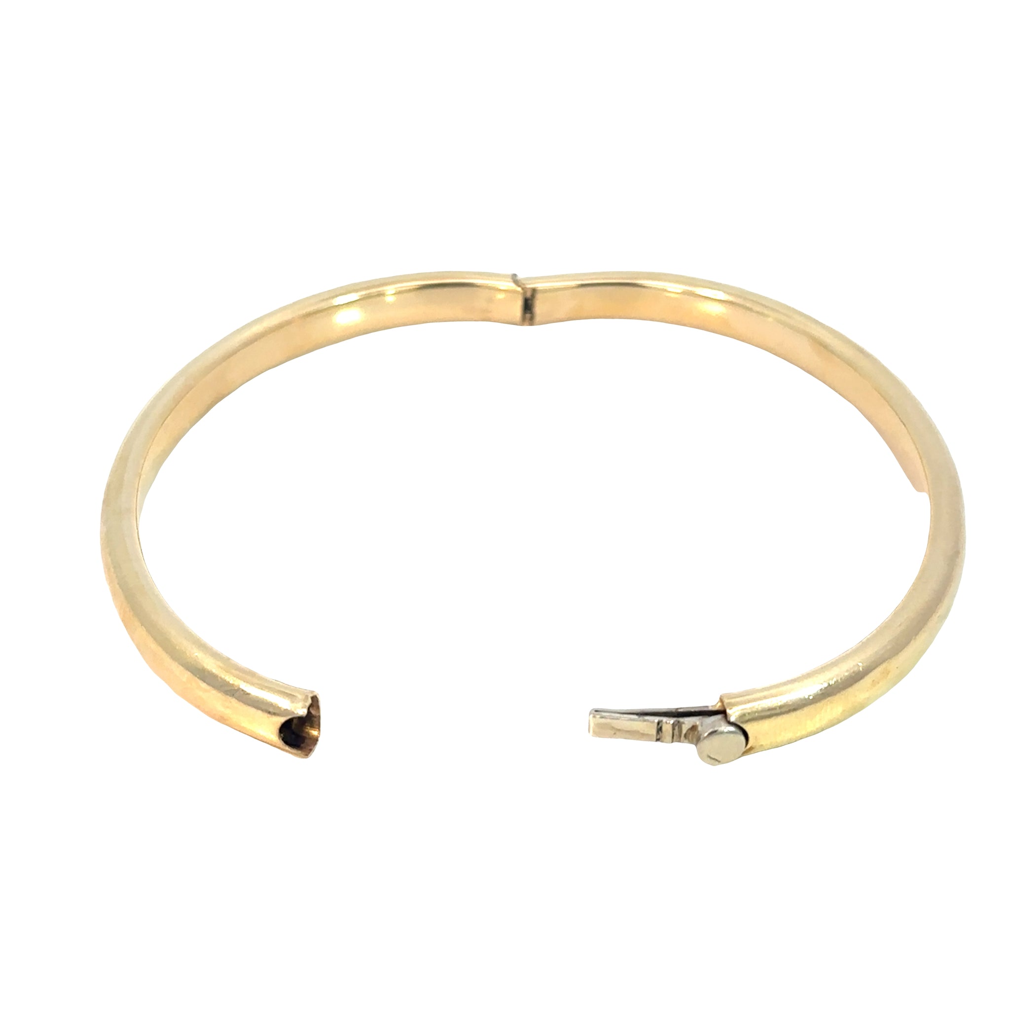 Hollow oval snap bangle in 14 Yellow Gold. Italian made. Hidden clasp.