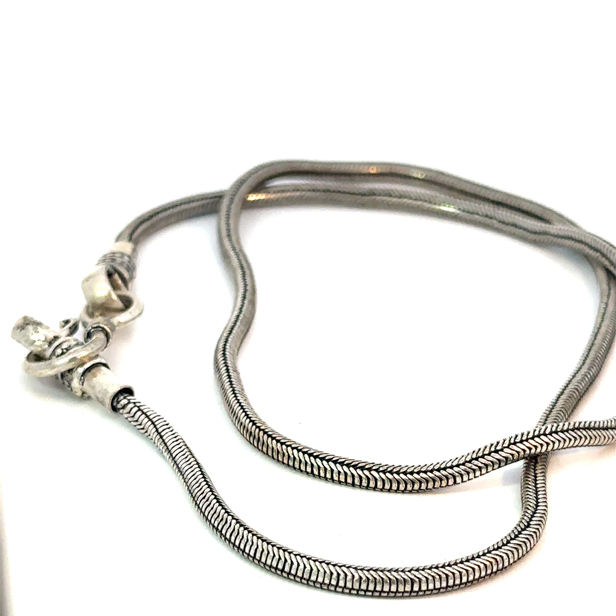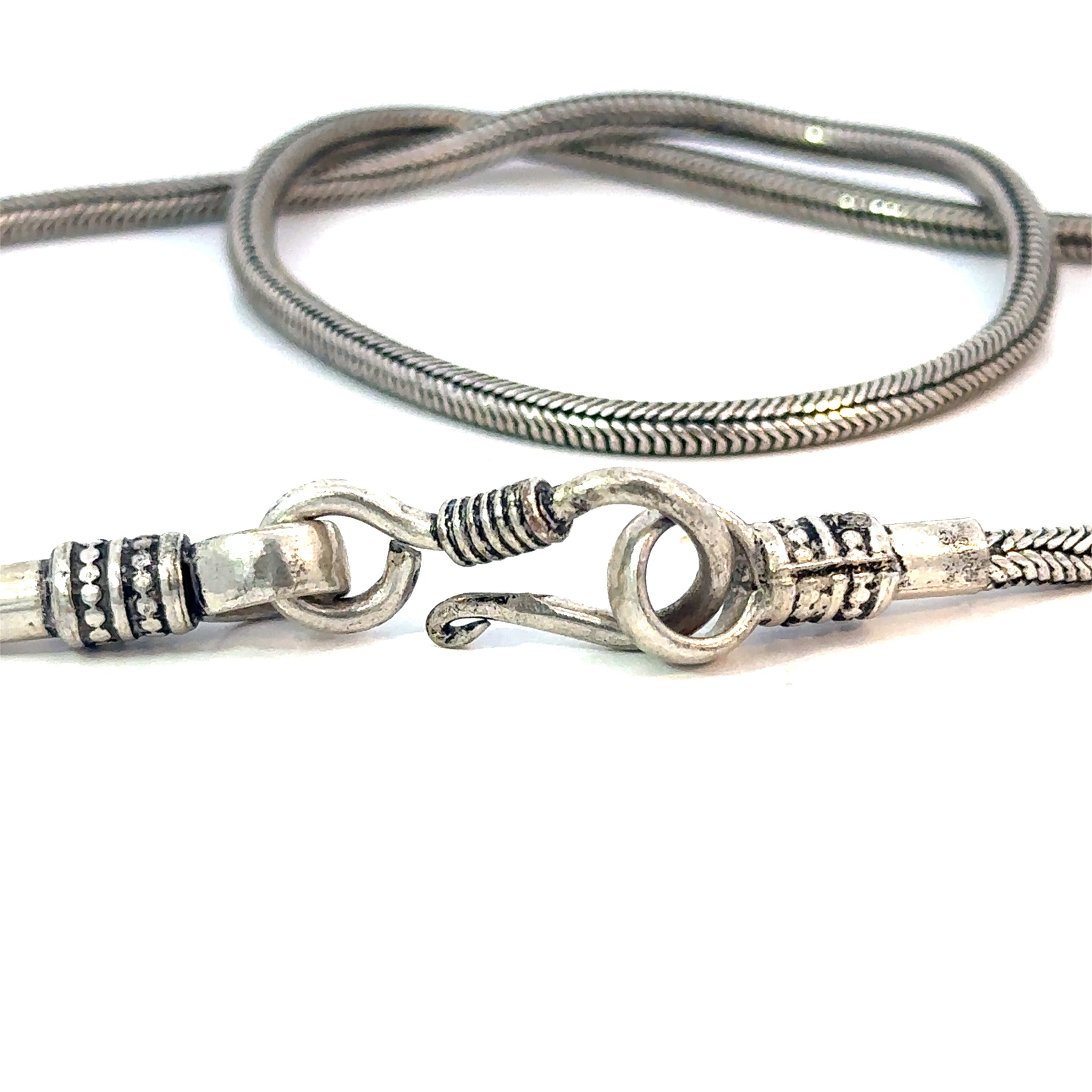 Rounded Snake Chain set in Stirling Silver. Hook attachment.