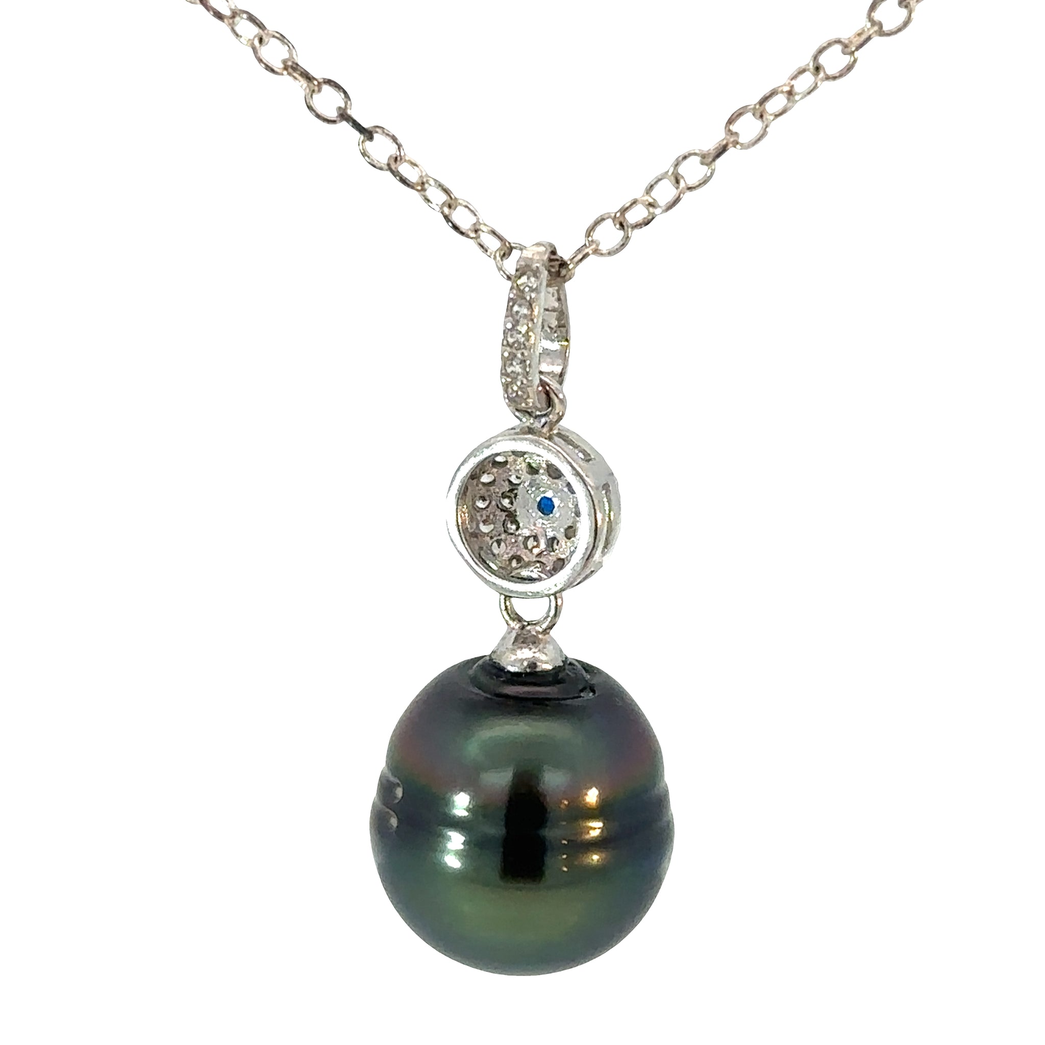 Peacock Pearl and Cubic Zirconia Sapphire Necklace.
