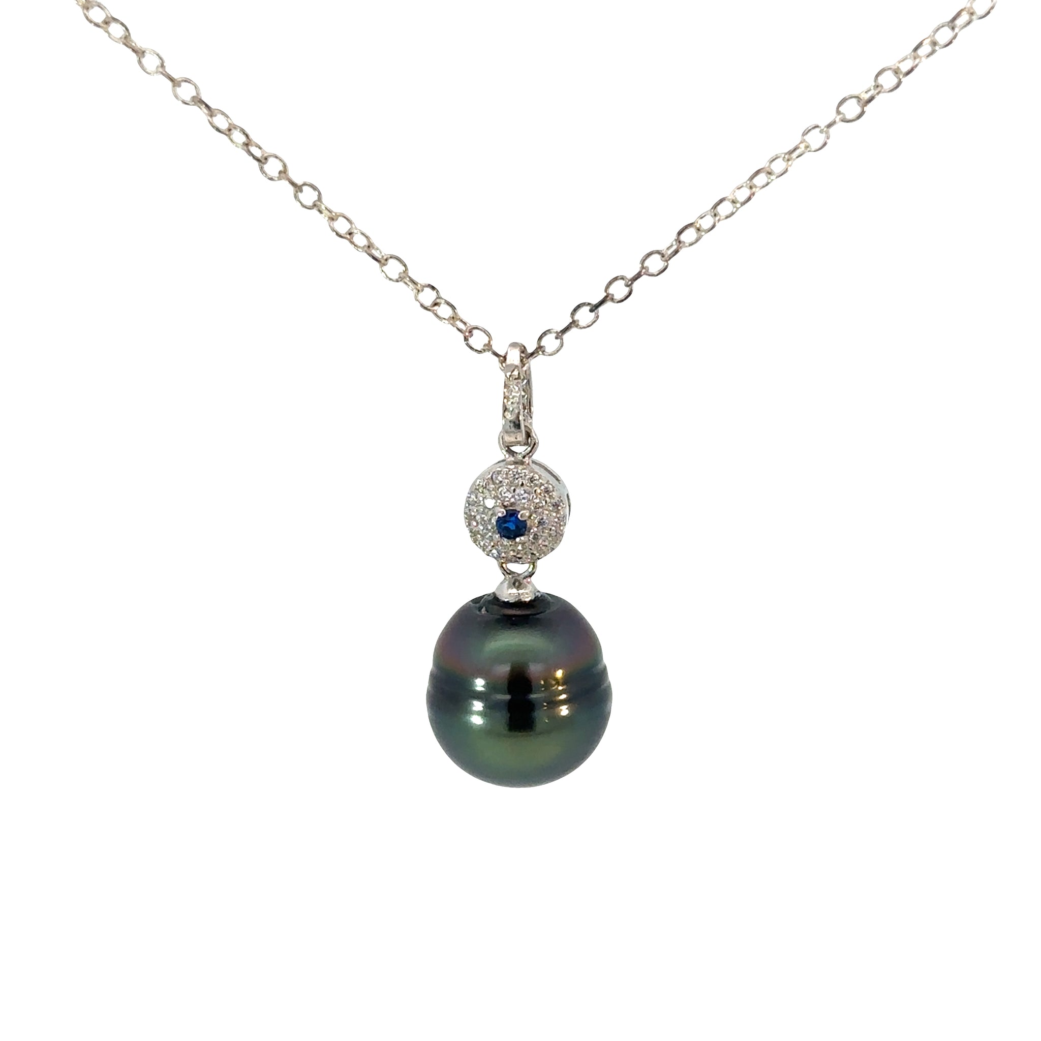 Peacock Pearl and Cubic Zirconia Sapphire Necklace