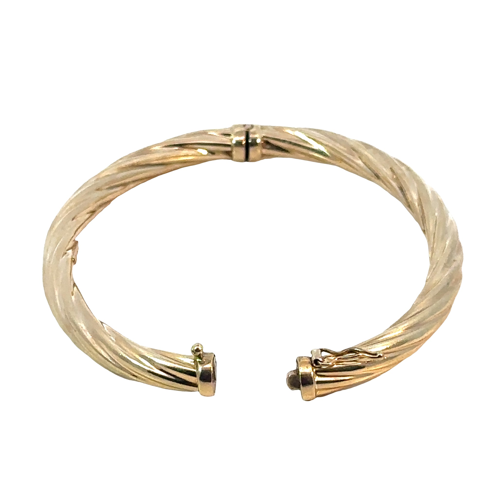 Hollow Twist Rope Finish Snap Bangle in 9ct Yellow Gold. Has a bikini clasp for extra security.