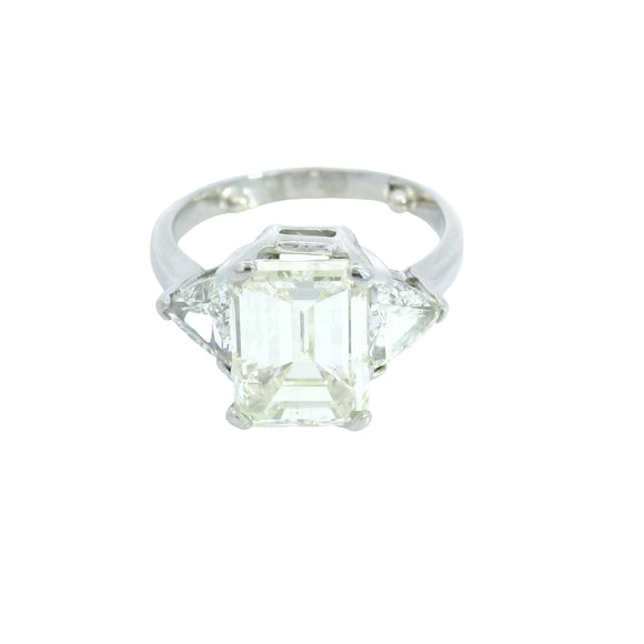 On a flat and tapered yellow gold band with raised squared shoulders.